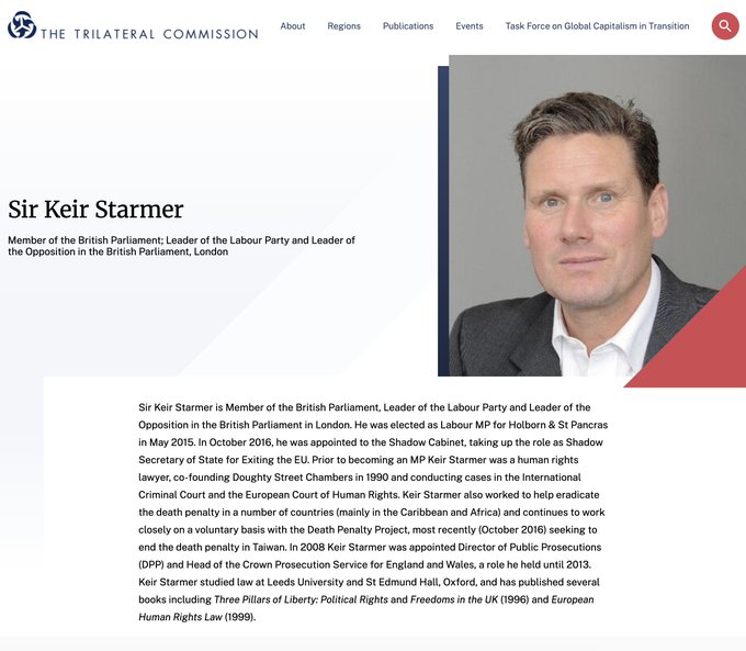 Alternative explanations point to Starmer’s later membership of the Trilateral Commission, founded in the 1970s by US billionaire David Rockefeller to address what it called “an excess of democracy.”